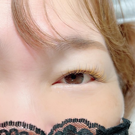 @kana._.eyeさんの写真では、ブラックのエクステとオレンジのカラエクを装着。ヘアカラーが明るめのベージュ系なので、ブラックのエクステだけを装着すると目元が際立ってしまう可能性があります。しかし、オレンジのカラエクを多めに装着することで、統一感が出て秋らしい目元に。
