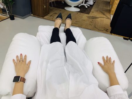 【覆面レポ】アイラッシュガレージのショールームに行ってみた!魔法のふわふわマツエクソファ「シフォン」の座り心地検証