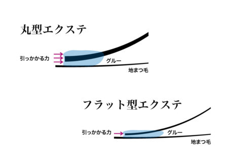 また、通常ラッシュリフト剤が残っている状態でエクステを装着するとモチが悪くなる可能性がありますが、接着面が広く取れるフラットラッシュなら比較的持続しやすいと考えられます。