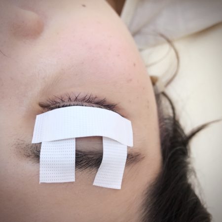 次に、上まつげ保護のためのテープを貼ります。イメージとしては、こちらの画像のような貼り方。
