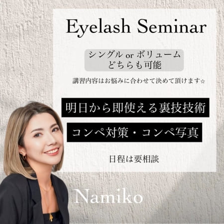 私は自分なりに研究をするなどたくさん対策して臨んだのですが、自分の経験を踏まえたポイントや対策をお伝えできたらとコンペ対策を始めました。コンペで受賞経験のある私が全力でサポートするので、興味のある方はぜひ!シングルラッシュ、ボリュームラッシュ、コンペ写真など、お悩みに応じた講習内容を選択いただけます。コンペはもちろん、サロンの技術を相乗的にアップさせることにもつながると思っています。