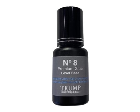 まず注目したいのは、初心者でも使いやすい「No.8 プレミアムグルー≪レベルベース≫」。グルーカラーは黒なのに、 カーボンフリーを実現している安全性の高いグルーです。トランプコスメの中でも人気の高いアイテムで、どんな毛質にも対応でき、モチが良いことがポイント。硬化速度は3秒程度で、幅広いレベルの施術者が扱いやすいテクスチャーのグルーです。