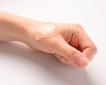 乾いた手にクレンジングジェルをとったら、手のひらであたためます。メイクとのなじみやすさに影響するので、油性ジェルタイプを使うときは特にあたためて使うのがおすすめです。