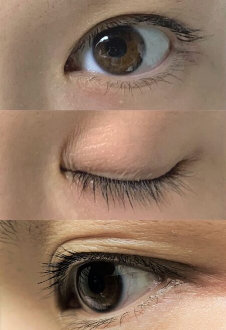 3名とも3ヶ月で長さが0.4cm伸び、ハリやコシがアップしたことを実感。写真を見ると、伏し目になったときのまつげのツヤにも驚かされます。