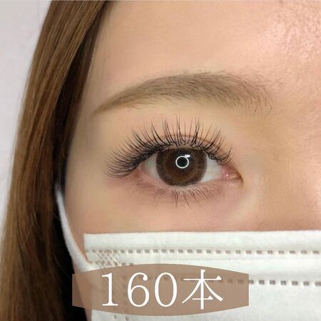 160本(80本/片目)は、140本よりもさらにゴージャスな印象に。目元の印象がかなり強まる本数なので、初めてのマツエクの場合、お客様がその変化に戸惑ってしまうこともあるでしょう。初心者向けのマツエクデザインとはいえませんが、マツエクの本数によって黒々とした束感や華やかさを演出したいお客様にぴったりの本数です。