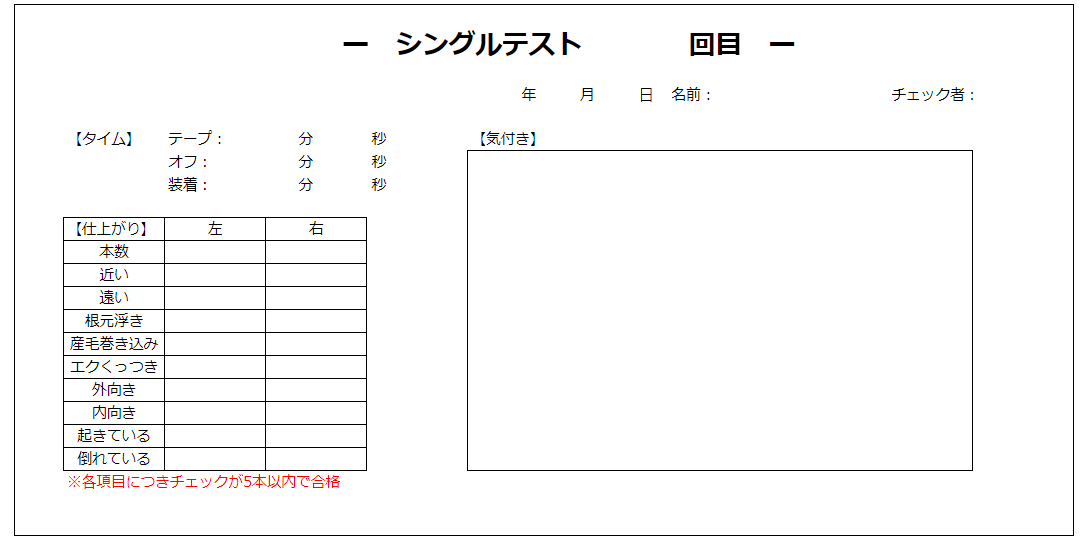 <エクステの仕上がりチェックシート例>