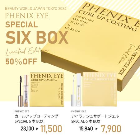 どちらも施術の仕上げにはもちろん、お客様のホームケアアイテムとしても活用することが可能。サロン仕上げの美しいまつげを長くキープします。そんな人気定番アイテムのセット商品が「BWJ東京」ではなんと50%OFFで購入可能。数量限定で小ロットにも対応でき、通常の12本SETよりお得!まとめ買いのチャンスです。こちらのSIX BOXは、オデットブースだけでなく、アイラッシュガレージ、大浴場ブースでも同時販売されます。